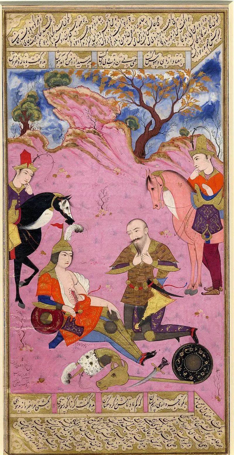 На этой иллюстрации XVI века из персидской рукописи «Шанаме» хорошо видна такая быкоголовая булава. То есть это не выдумка. Они были!