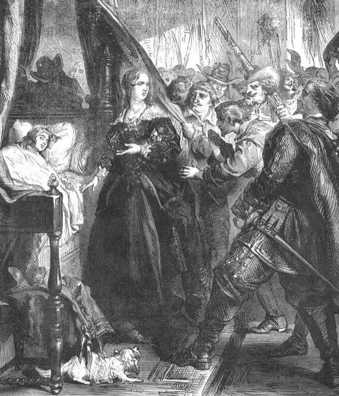 На этой иллюстрации XIX в. мы видим, как Анна-Мария Луиза Орлеанская, герцогиня де Монпансье («Великая мадемуазель», дочь Гастона Орлеанского и кузина Людовика XIV), 2 июля 1652 года отдает приказ гарнизону замка Бастилия открыть огонь по королевским войскам