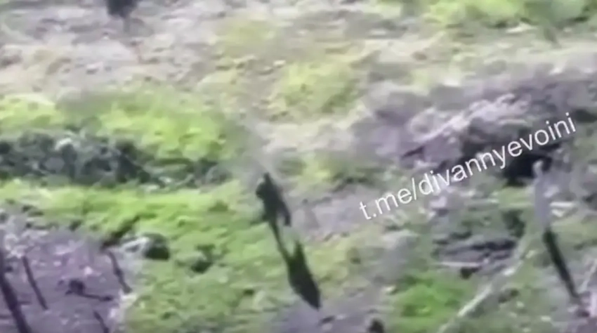 В какой-то момент беспилотник попросту врезается прямо в спину российскому солдату. Последний от удара падает на землю, но затем поднимается и бежит дальше. FPV-дрон же остается на земле.