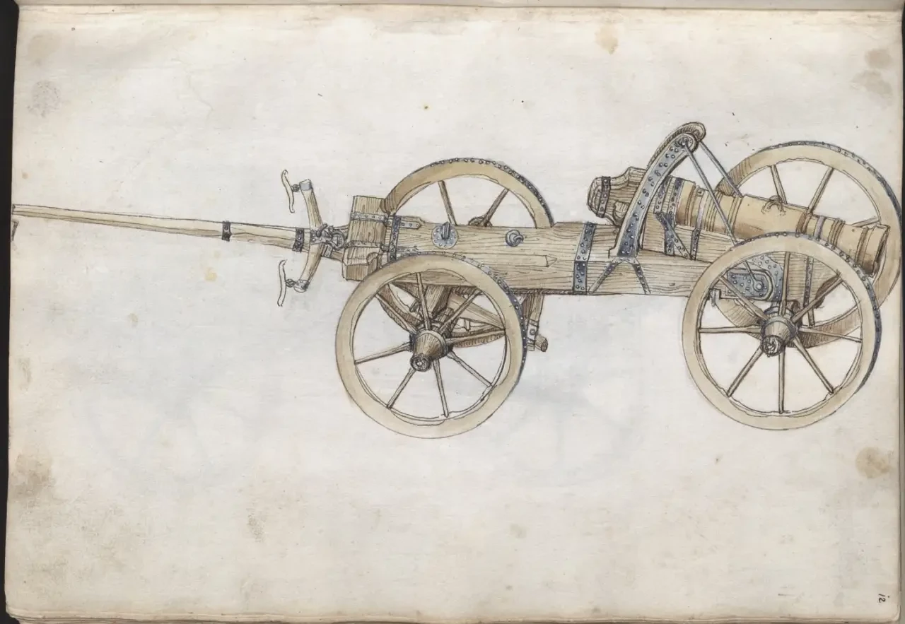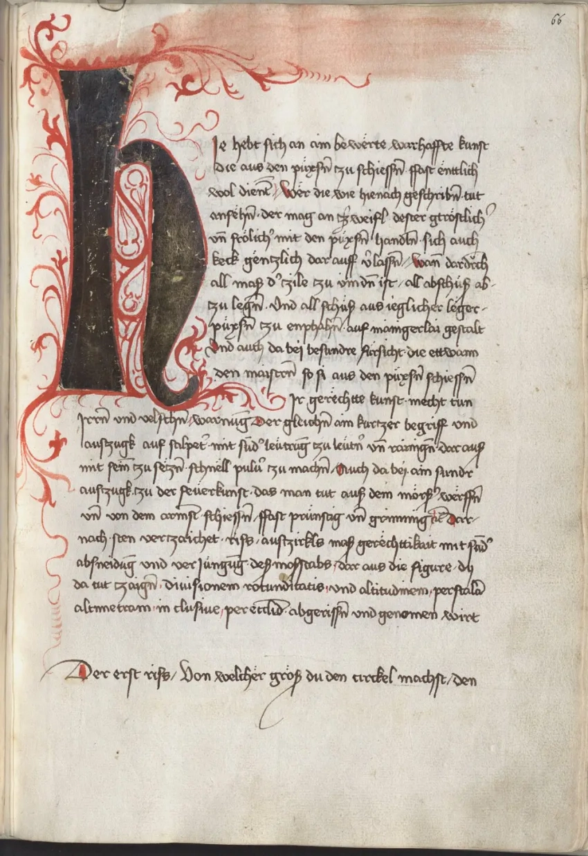 О самом авторе известно, что в 1460 году Мартин Мерц поступил на службу в качестве оружейника ко двору курфюрста Пфальца Фридриху I Победоносному (имел он и прозвище «Злой Фриц», и, видно, недаром), а спустя девять лет смог сделаться главным оружейником его армии. Когда Фридрих I умер в 1476 году, Мерц продолжил свою службу при курфюрсте Филиппе. А еще Мартин Мерц работал с металлом: усовершенствовал ряд составных частей моделей пистолетов, с успехом отливал орудийные стволы и одновременно трудился над своей книгой «Feuerwerksbuch» («Книгой фейерверков»). Других книг он не написал, но зато в этой уровень своего времени отразил очень четко, указав вдобавок еще и на ряд важных принципов конструирования порохового оружия. Итак, будем перелистывать самые интересные страницы этой книги и рассматривать то, что на них изображено.