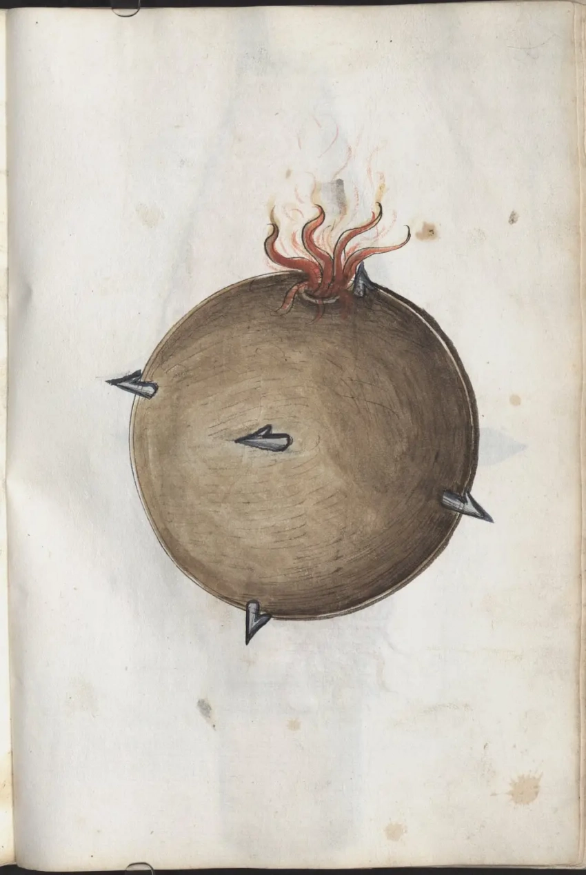 Просто фитильная бомба. Интересно, что в Корее до сих пор считают, что первым такую бомбу придумал их флотоводец Ли Сун Син. Очень может быть, кстати. Но вот в мире он был не первым явно!