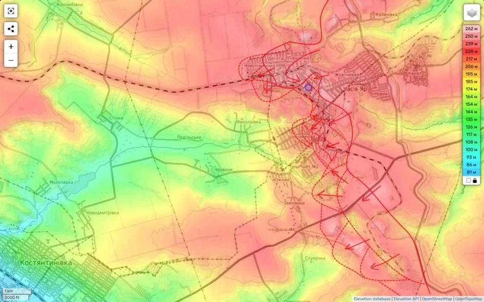 В районе Часова Яра наши части воспользовались плохой (хотя для кого как) погодой и сумели занять новые позиции в южной части города. Чуть ранее они сумели также немного продвинуться в районе северной части Часова Яра (взяли несколько посадок).