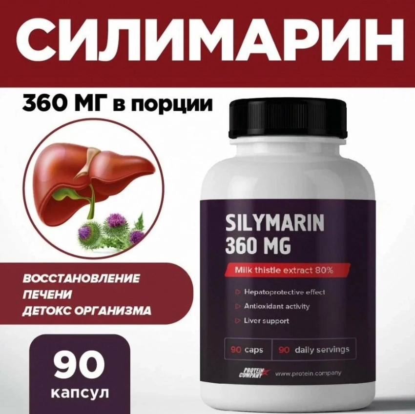 Экстракт расторопши от PROTEIN.COMPANY — это достойный кандидат в топ бадов для печени. Этот БАД обладает мощным гепатопротекторным эффектом, поддерживает нормальную функцию печени и способствует ее восстановлению при различных поражениях: химических, алкогольных и вирусных. Силимарин в составе продукта усиливает антиоксидантную активность, помогает снизить уровень жировой дистрофии, нормализует уровень холестерина и поддерживает обмен веществ. Также помогает при диабете и воспалительных заболеваниях печени.