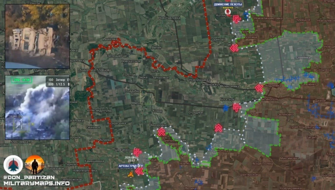 ВС РФ закрепились в центре населённого пункта Берёзовкаа. Штурмуются северные посадки — продвижение ведётся в сторону Новой Полтавки, нависание над следующим рубежом обороны ВСУ.