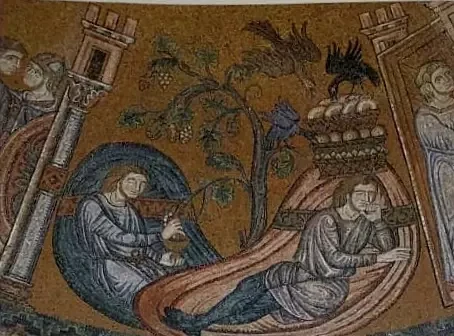 Хлеб и вино в Ветхом завете. Фрагмент мозаики Св. Марка. Венеция. Италия.