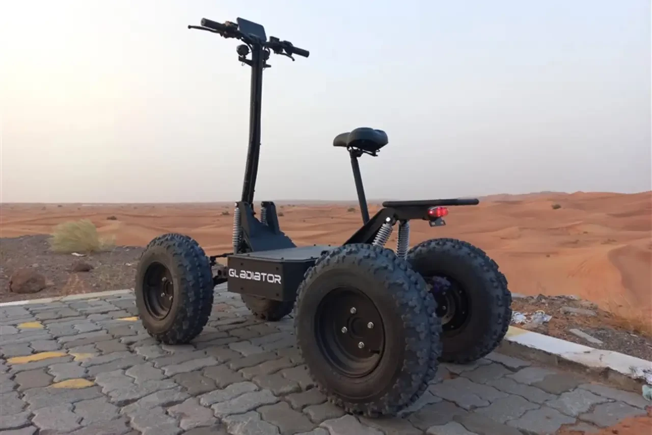 Концепт полноприводного электросамоката-квадроцикла 4X4 Gladiator, оснащённый литий-железо-фосфатной пожаро-взрывобезопасной АКБ 60 В / 2,4 кВт⋅ч с запасом хода до 100 км