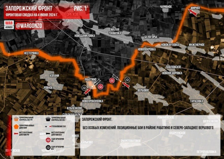 Новая карта боевых действий в зоне СВО на Украине по данным на 04.06.2024