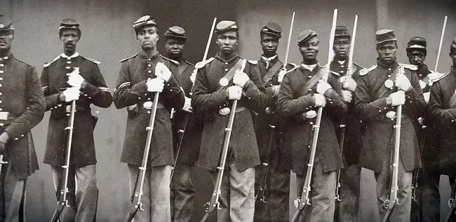 В 1866 году американский Конгресс учредил шесть полностью черных полков (вскоре объединенных в четыре), чтобы помочь восстановить страну после Гражданской войны и сражаться с индейцами на западной границе во время т.н. «войн на равнинах». Индейцы американских равнин, которые сражались против этих солдат, называли черные отряды «солдатами-буффало» (Buffalo Soldiers) из-за их темных вьющихся волос, которые напоминали им шкуру буйвола, и из-за их яростного характера боя. «Солдаты-буффало» имели самые низкие показатели дезертирства и военных трибуналов в свое время. Многие из них были удостоены Медали Почета Конгресса США (Medal of Honor) — награды, вручаемой в знак признания боевой доблести, которая выходит за рамки служебного долга. Герой этой статьи — 24-й пехотный полк был создан в 1869 году. Источник: свободный доступ