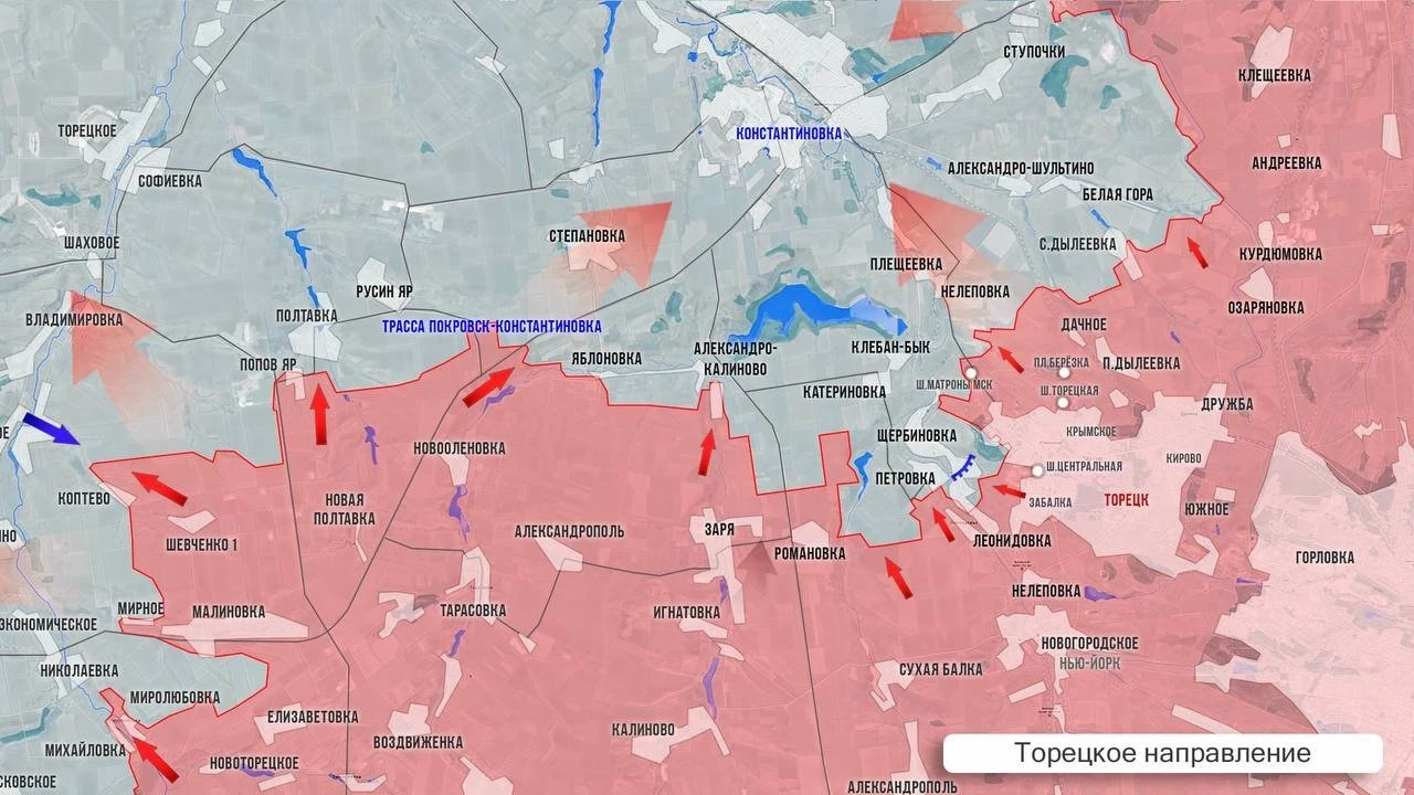 На Покровском направлении ВС РФ продавливают оборону ВСУ в лесополосах западнее Котляровки и Орехово. В Муравке тяжёлые бои, инициатива на стороне наших войск. Со стороны Новосергеевки ВС РФ стараются выйти к Молодецкому. В Удачном, Котлино и Зверево идут упорные сражения. На восточном фланге сообщают об успехах ВС РФ севернее Новоэкономического. Наши штурмовики форсировали р. Казённый Торец на нескольких участках и ведут бои в Разино, на подступах к Фёдоровке и Новоторецкому.