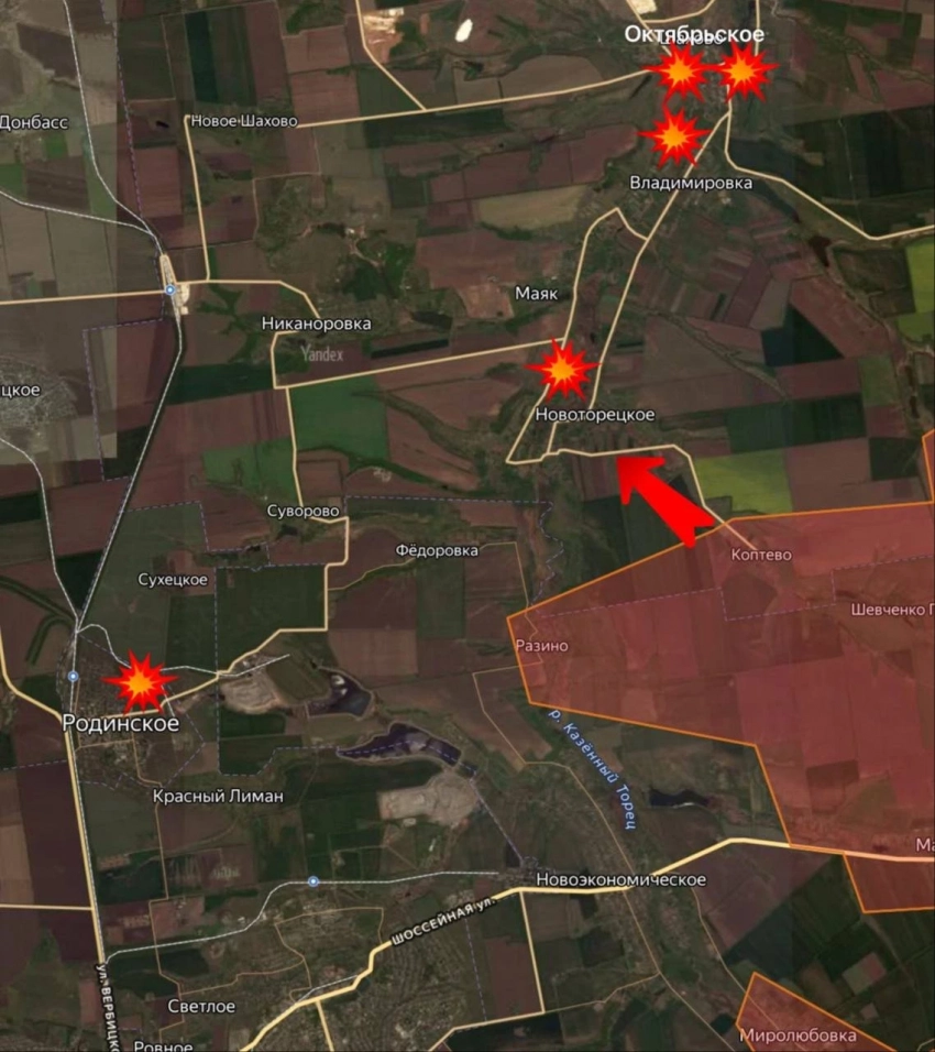 На Торецком направлении позиционные бои у Попова Яра, Полтавки, Яблоновки и Александро-Калиново. Севернее Дылеевки зачищаются опорники, фронт выравнивается перед штурмом Белой Горы, сообщает военкор Евгений Лисицын в своём Telegram-канале.