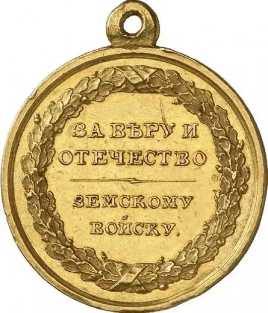 Здесь, впрочем, надо отметить одно важное обстоятельство. Хотя у нас было принято считать, что во время войны 1812 года патриотический подъем русского народа был так высок, что крестьяне прямо-таки рвались в ополчение и в партизаны, на самом деле это было не совсем так. Да, подъем был, и многие крестьяне действительно с радостью шли в ополчение! Однако это были в основном лишь те, кто непосредственно попадал под наполеоновское вторжение. Те, которых оно не затрагивало, продолжали жить и действовать по принципу: «По мне, куда велят!». Кроме того, коллективная народная память предупреждала, что от ополчения особого добра не жди – воевать придется точно так же, а прав у тебя никаких, да и на награду рассчитывать нечего. Ведь в России уже собиралось ополчение в 1806-1807 годах, но никакой «награды» крестьяне так и не получили! Им, правда, выдали медали, причем много: 2220 медалей из серебра и 6145 из золота, включая и 100 золотых медалей, которые должно было носить на Георгиевской ленте. Однако этим-то все и ограничилось, тогда как крестьянам хотелось гораздо большего.