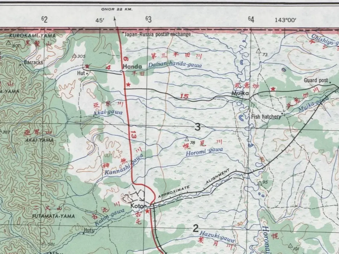 Японцы на левом, западном берегу Пороная, у подножия сопок обнаружили относительно пологую и сухую полосу между сопками и болотами поймы, шириной примерно 1,5 км, в некоторых местах до 5-6 км, по которой была проложена Главная военная дорога и в которой были построены населенные пункты.