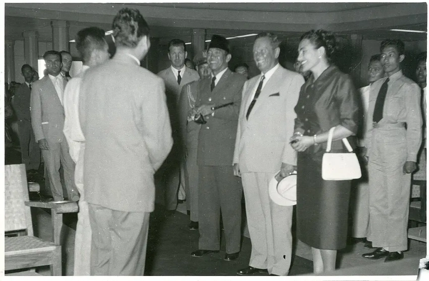 Сукарно, Тито и Йованка Броз на борту «Галеба» в Джакарте, 1958 г.