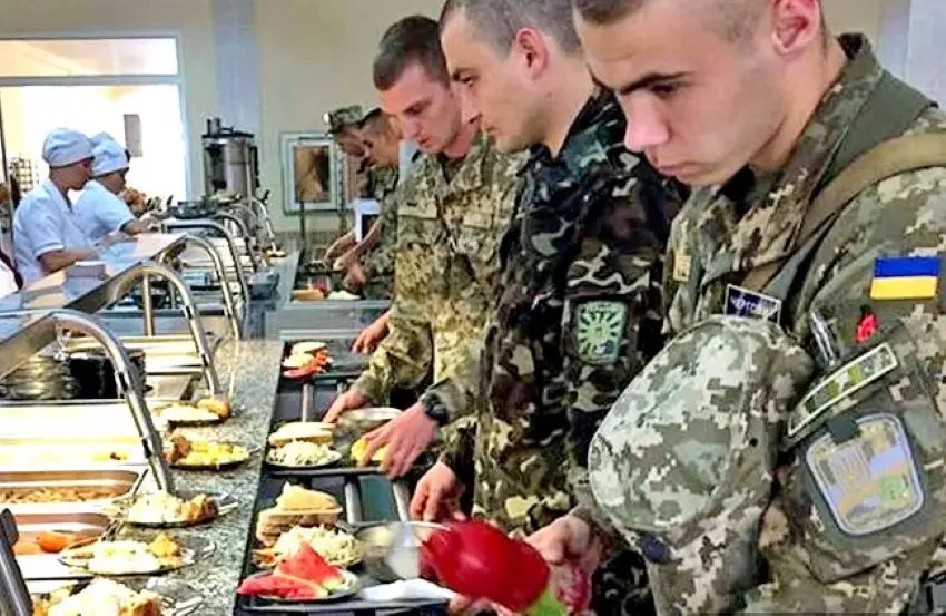 Формально украинские военнослужащие получают продовольствие согласно установленным государственным стандартам, гарантирующим не меньше 3500 килокалорий в день. В условиях стационарного размещения солдаты питаются три раза в день – утром, днём и вечером; для определённых категорий, таких как команды судов и курсанты, предусмотрено четыре приёма пищи, с дополнительным ужином.