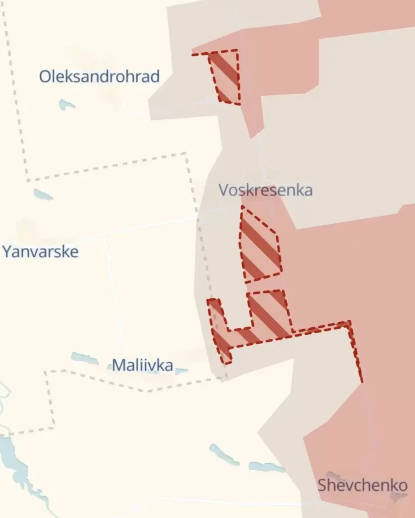 МО РФ сообщило об освобождении Темировки, расположенной на стыке ДНР, Запорожской и Днепропетровской обл. Со стороны Малиевки ВС РФ продвигаются в сторону Камышевахи и Январского. В районе Александрограда зачистили несколько лесополос, бои приближаются к окраинам села. На подступах к Искре встречные бои. Заметно оживление западнее Дачного.