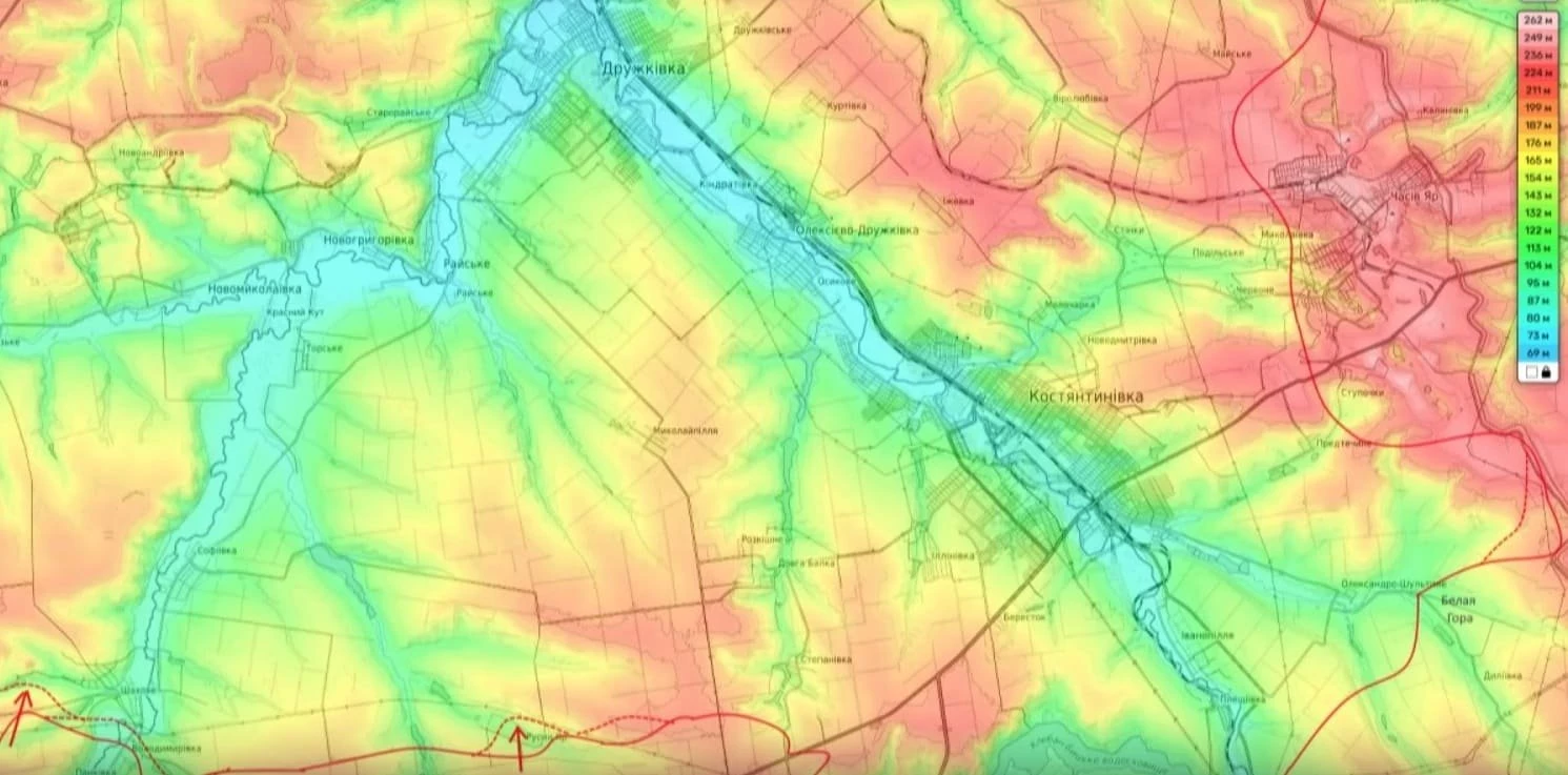 На Константиновском направлении, как следует из свежих новостей от Юрия Подоляки, Вооружённые силы Российской Федерации (ВС РФ) в составе 8-й армии пытаются продвинуть фронт с юга. Он опроверг информацию о том, что российские части установили полный контроль над населённым пунктом Александро-Калиново.