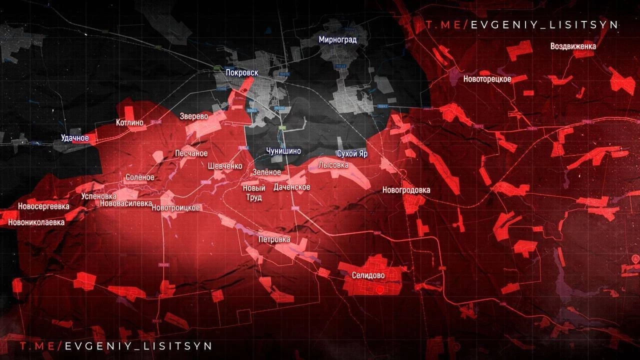 Покровское направление: упорные бои в районе Удачного и Котлино, в Леонтовичах наши теснят противника. Восточнее Мирнограда зачищен ГОК, севернее идут бои на окраинах Красного Лимана и Родинского.