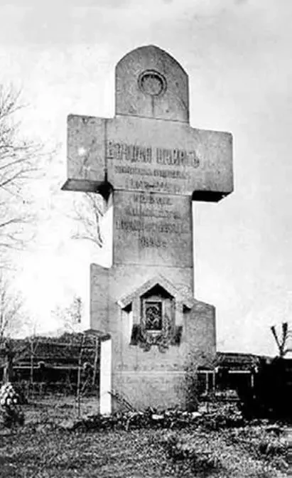 А в 1912 г. уже представителями русских властей перед входом на кладбище был установлен восьмиметровый крест из белого мрамора с мозаичной иконой Божьей матери, выполненной по В. Васнецова.