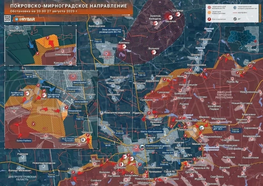 На Покровском фронте развивается наступление в Удачном, бои идут в северной части посёлка. ВС РФ вышли к окраинам Молодецкого, а также заняли ещё одну лесополосу у дороги на Покровск. МО РФ сообщило о взятии Леонтовичей. В южной части Покровска нашим удалось закрепиться за квартал «высоток».