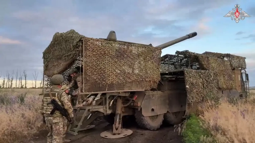 2С44 «Гиацинт-К» в одном из учебных центров, декабрь 2024 г. Кадр из репортажа т/к «Россия 1»