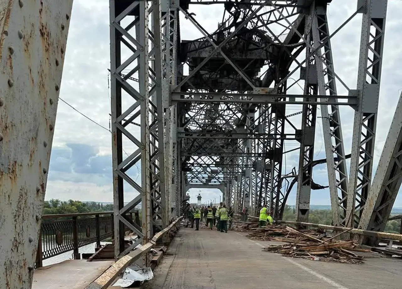 Глава компании-оператора украинских железных дорог публикует новые фото с состоянием Крюковского моста через Днепр в Кременчуге. Напомним, что по мосту было несколько прилётов БПЛА «Герань» в ночь на 7 сентября.