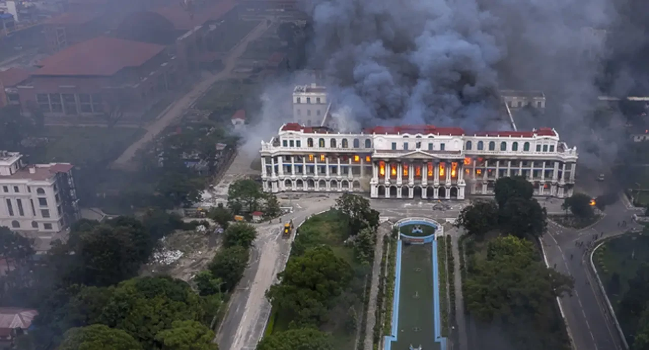Горят или уже сгорели главный правительственный центр, здание федерального парламента, канцелярия президента, здание верховного суда, здание районной администрации, дома премьер-министра и предшественников премьер-министра и офисы партий. Уничтожены архивы - правительственный, судебный, несколько партийных. Горят библиотеки, полицейские участки и многое другое.