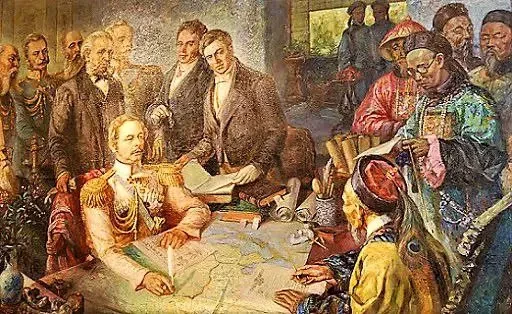 «А при чём здесь подписание Айгуньского мирного договора?» — спросите Вы? Так вот — тот мужик-китаец, что сидит спиной в шапке с павлиньим пером, — тот самый Ишань. Он не только англичанам Гонконг отдал, но и русским Приамурье с Приморьем...