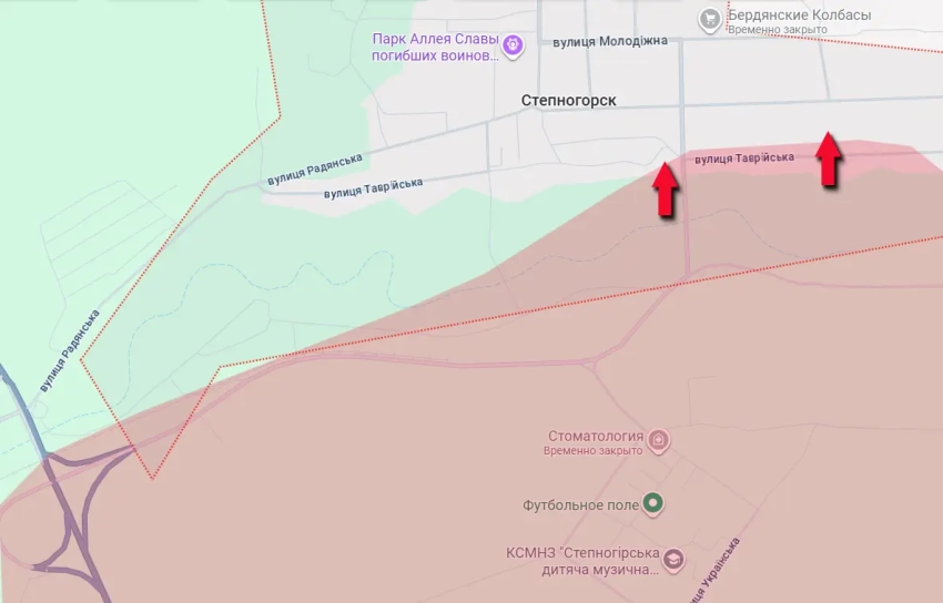Тем временем продолжаются бои за Степногорск. Наши войска, ранее взяв под полный контроль 3-й микрорайон, вышли в «основную» часть города. Боевые действия разворачиваются в частном секторе, в районе улицы Таврическая и к северу от неё.