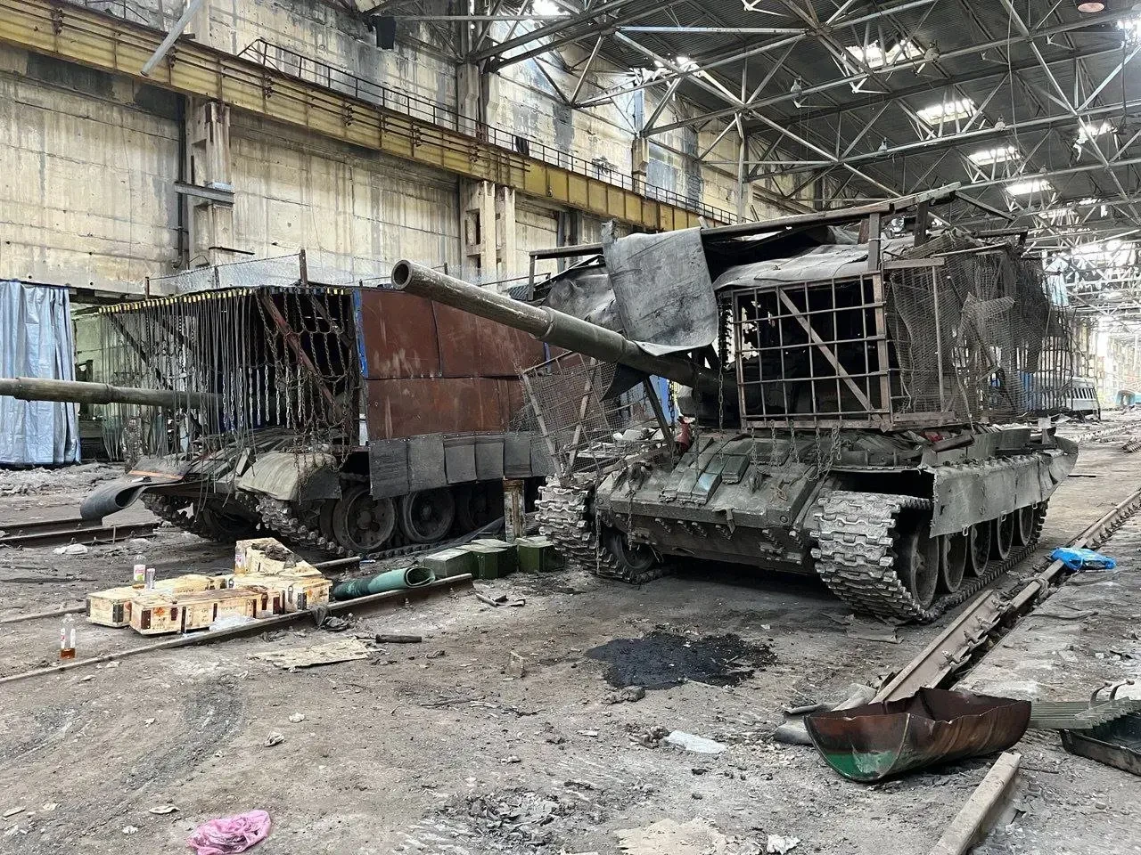 Решение нашлось быстро. Так как танк по сути был лишён возможности вести огонь, его превратили в натуральный самоходный ангар, наварив на него каркас и установив на него металлические листы почти вкруговую. Эффект от появления такого монстра на поле боя был как медийный, так и практический — удалённый от основной брони экран в виде своеобразного ангара сделал машину почти неуязвимой для FPV-дронов, что стало поводом для широкого распространения подобных конструкций.