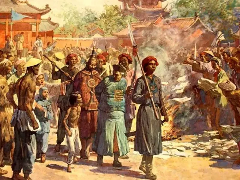 Видения продолжались месяца полтора. В одном к Хунь Сюцюаню даже явился Конфуций, признавшийся, что сбил китайцев с верного пути своими побасенками. Странное видение, но не стоит забывать, что именно экзамены по конфуцианскому канону «толковый молодой человек» трижды завалил... Трижды? Нет. После захвата англичанами Гуанчжоу во время Первой опиумной войны он ещё раз съездил туда на экзамен. И снова его не сдал! Вернулся, понятное дело, злым на весь мир, нелюдимым, и тут, как чёртик из табакерки, выскочила та самая брошюрка, написанная Лань Фа и лежавшая несколько лет в сумке Хунь Сюцюаня. Её обнаружил один из братьев незадачливого кандидата в чиновники, и они на пару начали её изучать.