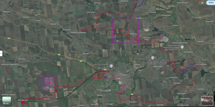 Параллельно развивается операция по окружению гарнизона ВСУ в городе Родинское. Благодаря успешным атакующим действиям юго-восточнее Покровска и западнее Родинского, этот город оказался в тактическом окружении. Дороги, по которым гарнизон еще может попытаться выйти, находятся под плотным огневым контролем российских войск, вплоть до применения стрелкового оружия.