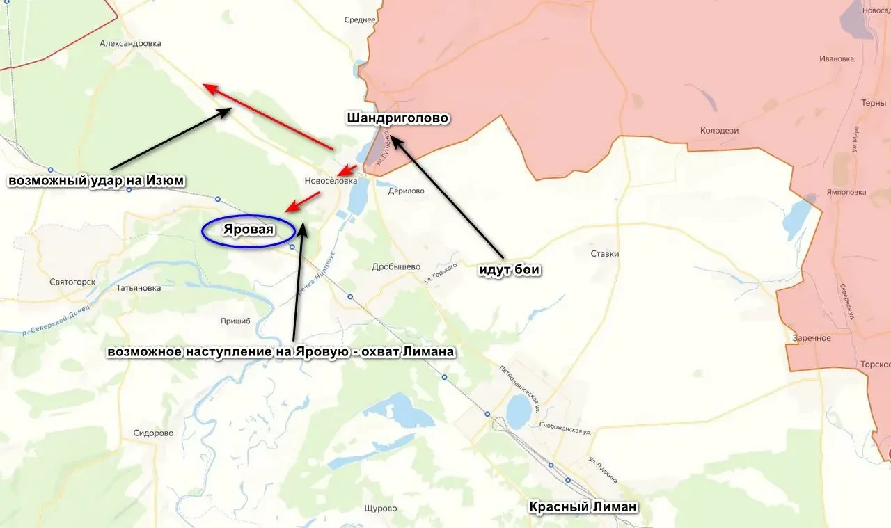 Контроль над Шандриголово дает ВС РФ возможность удара на Яровую с выходом в тыл украинской группировке, а дальнейшее продвижение в этом направлении даст возможность охвата Славянско-Краматорской агломерации.
