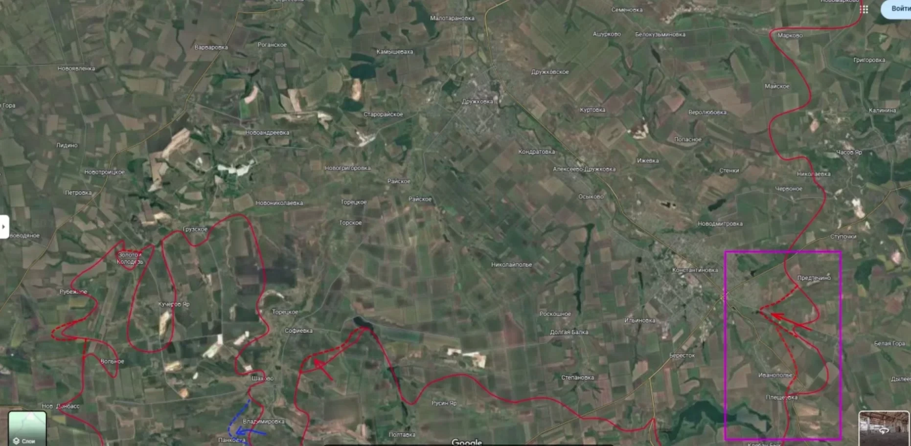 На Константиновском направлении ВС РФ ведут ожесточённые бои в районе Иванополья и Плещеевки, пытаясь прорваться к восточным окраинам города.