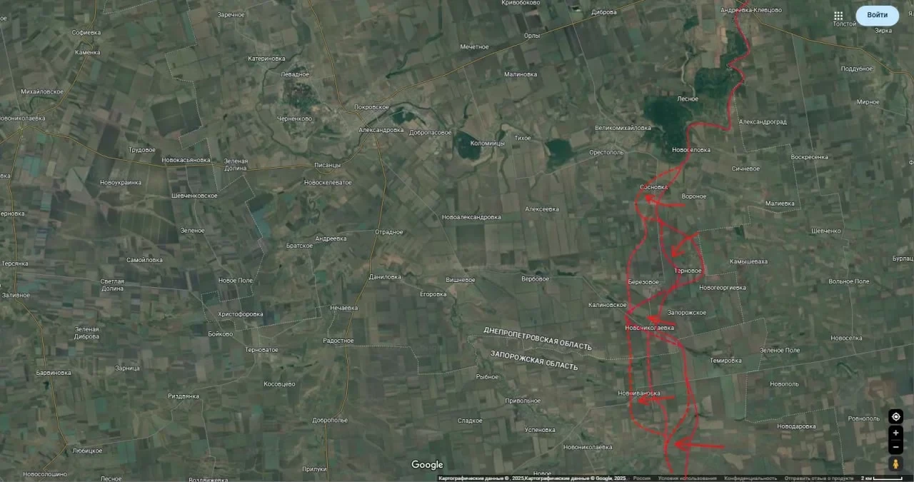 Он указал, что карта освобожденных населенных пунктов показывает попытки обхода Гуляйполя с тыла. Этот населенный пункт является важным стратегическим узлом обороны противника в Запорожской области, однако основные линии обороны проходят южнее города к районам Полог и Работино, где Россия наносит удары со стороны этих населенных пунктов. Сейчас российские войска заходят с другой стороны - с территории Днепропетровской области, чего противник не ожидал, и это способствует быстрому продвижению российских сил.
