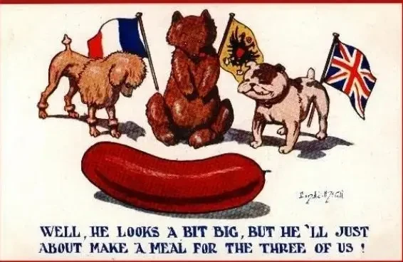 Со времен Наполеоновских войн отношения между Россией и Пруссией (а потом — Германией, II Рейхом) были исключительно дружественными. Это хорошо понимали во Франции, где на ратификацию Александром III 8 января 1894 года явно невыгодной нашей стране «военной конвенции», а затем вступлением в Антанту, откликнулись издевательской карикатурой, на которой разбитная девица Марианна спрашивает простодушного русского медведя: