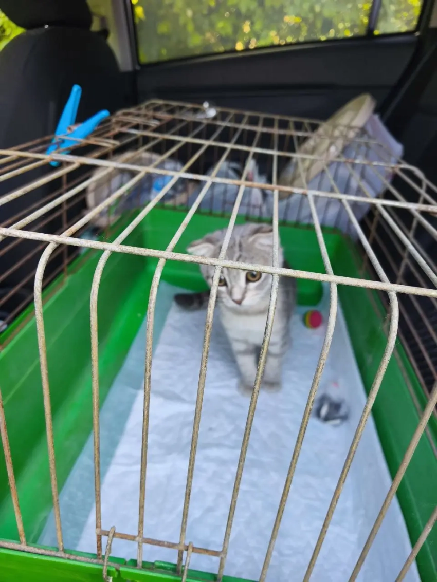 Через две недели мы позавтракали, я перенес наши шмотки в машину, и мы поехали к дочке забирать кошку. Кошка уже посетила доктора, осмотрена, сделаны нужные прививки. Загрузили клетку с кошкой в машину и погнали домой.
