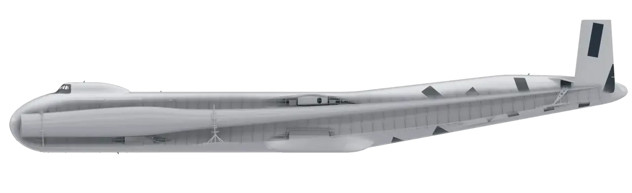 Предлагается прямое крыло с развитыми законцовками, загнутыми вниз. На плоскости разместят четыре пилона с двигателями. Практически по всему размаху предусматривается развитая механизация. Хвостовое оперение — Н-образное с небольшой стреловидностью стабилизатора.
