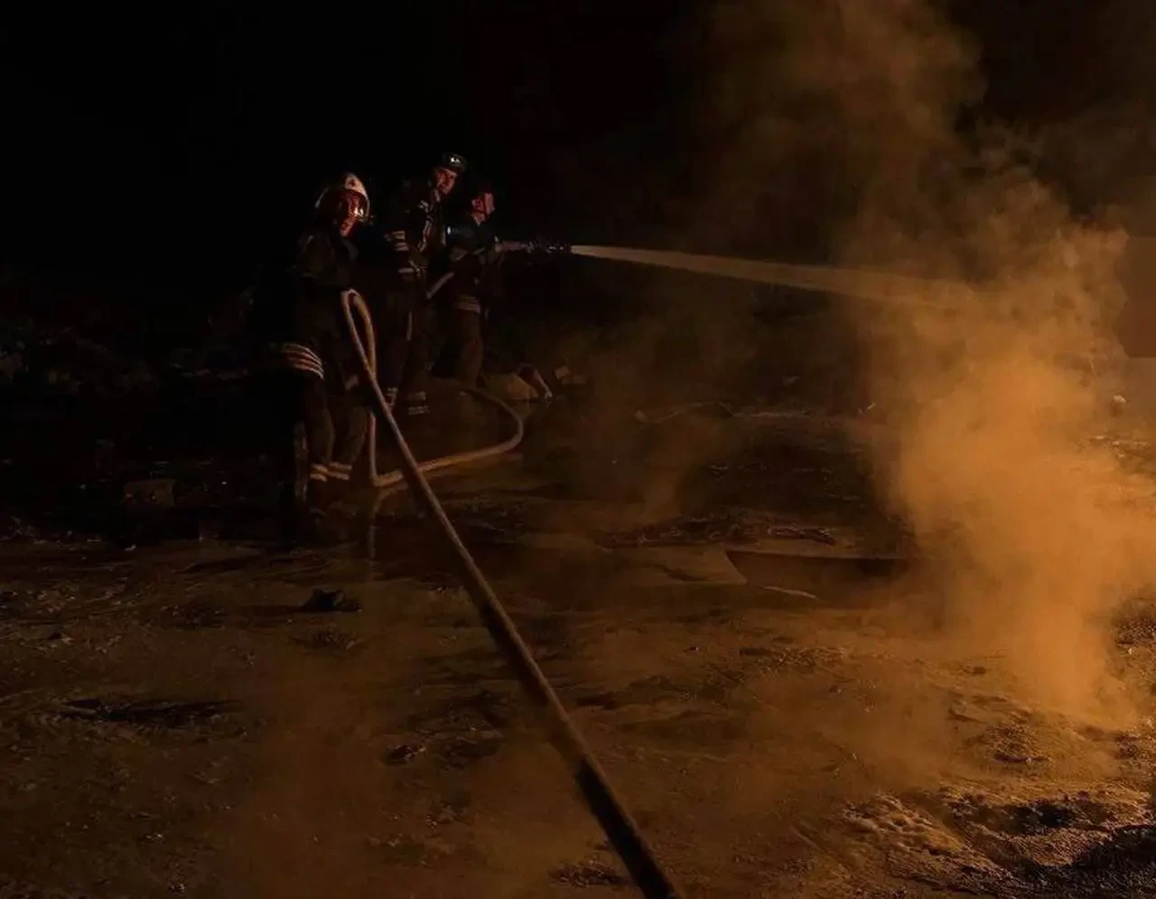 Противник при съёмке ретуширует места прилётов российских авиационных бомб. На месте разрывов работают пожарные бригады.