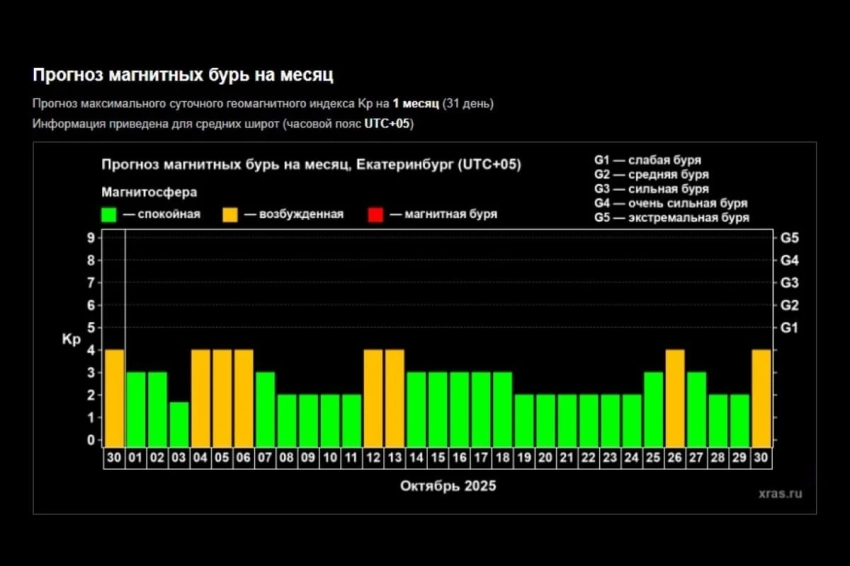 Первый день октября 2025 года обещает быть неспокойным для метеозависимых людей. Вчерашняя магнитная буря стала самой мощной за последние три месяца. Сегодняшние изменения геомагнитного фона могут сказаться на самочувствии многих людей.