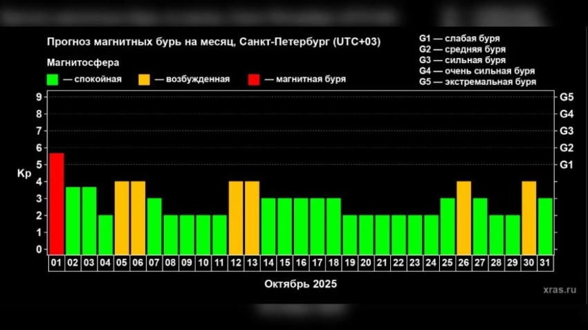 Предварительный график магнитных бурь в октябре 2025 года