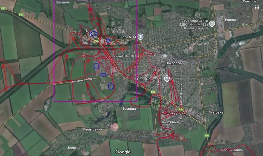 Под Покровском штурмовые группы продвигаются на северо-западе и в центре города, обходя очаги сопротивления. Также зачищаются дачные массивы к востоку.
