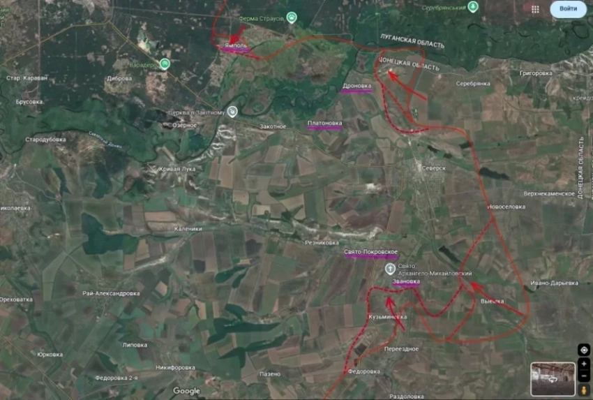 На Северском направлении по данным Подоляки, здесь формируется оперативное окружение. Российские войска заняли Кузьминовку и ведут бои в южной части Звановки. Одновременно идет продвижение к Свято-Покровскому и трассе Лиман - Северск, что может полностью перерезать снабжение украинской группировки.