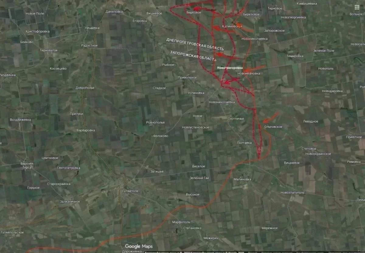 Параллельно с этим, группировка войск "Восток" совершает стремительный, по меркам СВО, рывок в тыл Гуляйпольской группировке противника. Продвигаясь от населенного пункта Вербовое, наши войска вплотную приблизились к важнейшей логистической артерии ВСУ — трассе, соединяющей Гуляйполе с Покровским.