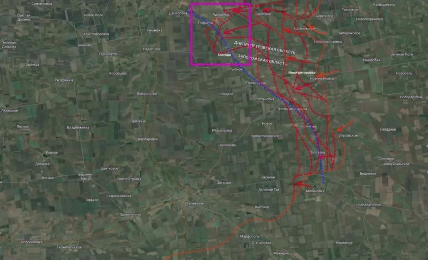 Развивая наступление, войска движутся к стратегически важной трассе, идущей от Покровского на Гуляйполе. Уже сегодня идут бои за Егоровку, которая частично взята под контроль. Противник также зажат в клещи в районе Вишневого.