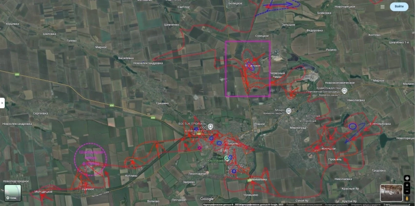 Тем временем в самом Покровске русские войска продолжают атаковать и постоянно проникают из центральной и западной частей города к железнодорожной станции в северной части населённого пункта. ВСУ пытаются контратаковать, чтобы помешать русским военным закрепиться за железной дорогой.