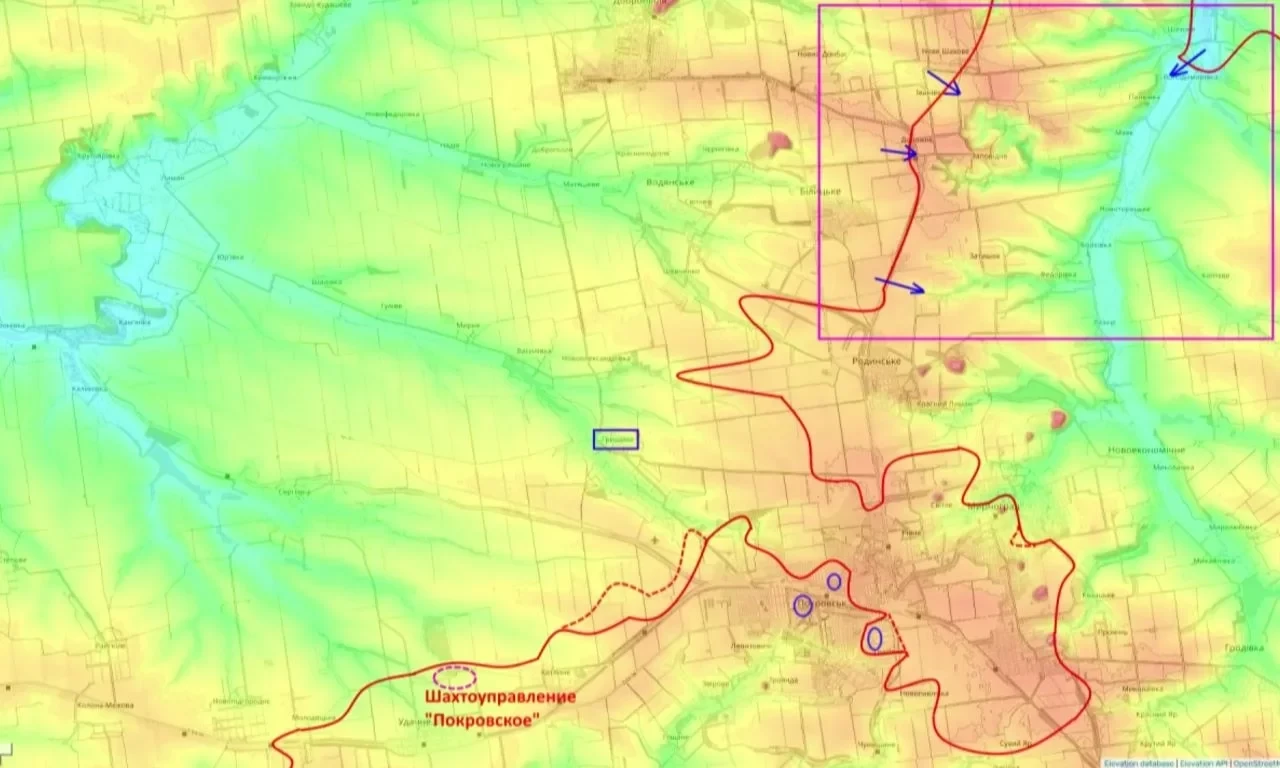 Параллельно с формированием «котла», группировка «Центр» продолжает «прогрызать» эшелонированную оборону ВСУ в районе Ивановки и Новопавловки, медленно, но верно продвигаясь вперед. Также идут бои у Молодецкого. Опираясь на занятые ранее Шахтоуправление «Покровское» и обогатительную фабрику, ВС РФ обеспечили себе левый фланг и начали «котловое движение» на Гришино.