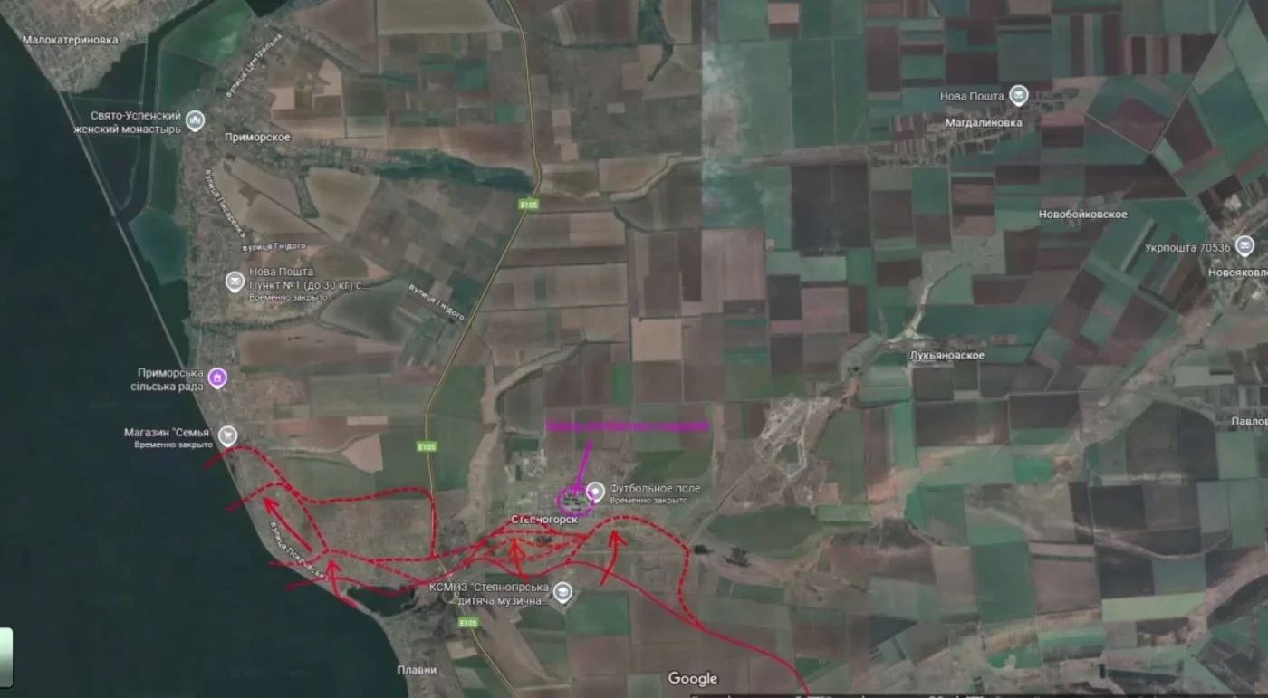Подоляка отмечает, что в зоне ответственности группировки «Днепр», в районе Степногорска и Приморского, продолжаются бои местного значения. Российские войска удерживают инициативу, пытаясь продвигаться вперед небольшими рывками.