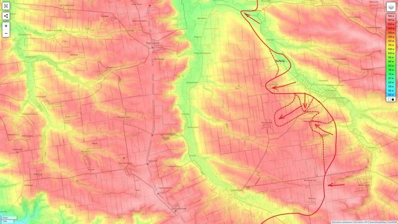 Украинские мониторинговые каналы сообщают, что российские части группировки «Восток», после полной зачистки оборонительной линии по реке Янчур, продолжают буквально рвать в клочья оборону ВСУ далее на юго-запад (по направлению на Гуляйполе).