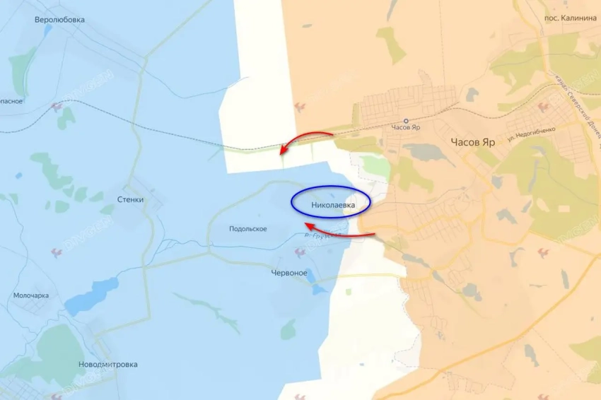Несмотря на то, что Часов Яр перешел под контроль российских войск еще в июле, нашим пришлось дозачищать юго-западную часть города от остатков украинских формирований. После этого штурмовые подразделения «южан» пошли вперед вдоль реки Грузкая. Одновременно началось выдвижение вдоль железной дороги в сторону Веролюбовки. Таким образом, наши войска начали охват украинских формирований, находящихся в районе Николаевки к западу от города.