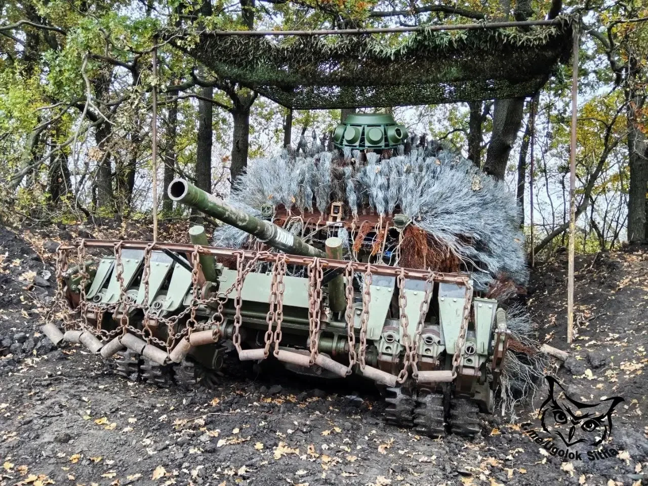 Оказалось, что и это не предел – сейчас танки сплошь и рядом работают с закрытых огневых позиций, которые тщательным образом замаскированы и вокруг которых оборудованы сразу несколько запасных и ложных позиций. Очевидцы свидетельствуют, что на некоторых позициях танкисты запасаются листвой и сухой травой, которыми присыпают следы от гусениц после каждого боевого выхода. БПЛА-разведка кардинально изменила правила игры на поле боя, и отстранение танков от передней линии фронта – далеко не единственная трансформация.